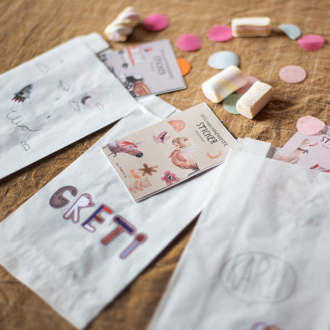 Natürlich hat jedes Kind seine eigenen Vorlieben und viele Kindergeburtstage müssen nach einem ganz bestimmten Motto gefeiert werden. Dekoration, Luftballons, Torte und selbstverständlich auch die Gastgeschenke sollen hierzu passen und das richtige Motiv und Farbe haben. Daher haben wir bei halfbird eine weitgefächerte Auswahl, die jeden noch so ausgefeilten Geschmack zufriedenstellt. Egal ob Baustellenparty, Feenparty, Sommerparty, Weltall, Tiere, Dinosaurier oder Einhörner: Hier findest du die dazugehörigen Mitgebsel. Uns ist bewusst, dass viele Kinder Disney, Benjamin Blümchen und Bibi Blocksberg mögen, doch wir möchten mit Give-aways punkten, die wirklich einzigartig sind und die nicht jeder hat. Die meisten Motive für unsere herrlichen Sticker, Bügelbilder und Karten sind von unserer halfbird-Gründerin Mona mit viel Liebe per Hand gezeichnet worden. Mit viel Kreativität und hochwertigen Materialien sind daraus Produkte entstanden, die unser Leben ein klein wenig bunter, schöner und praktischer machen. Schaue dich in unserem Sortiment um und finde die passenden Kindergeburtstag-Mitgebsel.