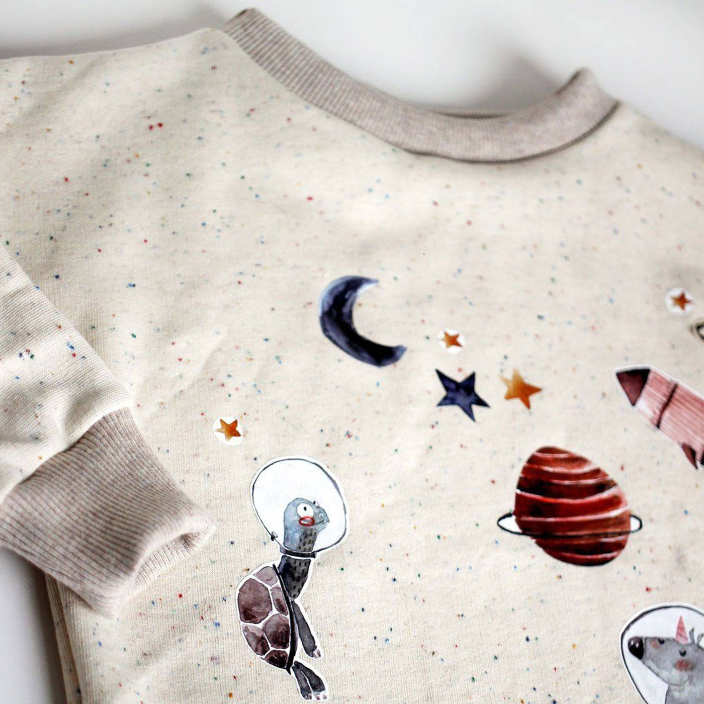 Natürlich sehen unsere Weltraum-Bügelbilder fantastisch aus und zaubern aus schlichten Klamotten einzigartige Unikate. Mit einem Schildkröten-Astronaut, einem Planeten und ein paar Sternen wird aus dem grauen Pulli auf einmal eine spannende Weltraumlandschaft. Doch Aussehen alleine reicht uns nicht, unsere Patches können noch viel mehr! Was gibt es schließlich Schöneres als Anziehsachen, die du eigentlich entsorgen wolltest, ein zweites Leben zu schenken? Ganz nach dem Motto wiederverwenden statt wegwerfen sorgen die Bügelbilder dafür, dass Kleidung länger getragen wird. Mit dem Galaxy-Weltraum-Set träumt man zwar von weit, weit entfernten Galaxien, doch um lange Transportwege zu vermeiden, sind alle unsere Bügelbilder “Made in Germany”. Zusätzlich sind sie frei von Phthalaten und PVC und werden plastikfrei mit recycelbaren Materialien verpackt. So kannst du ohne schlechtes Gewissen deine Lieblingsmotive bestellen und das Kind kann von aufregenden Weltraumspaziergängen träumen.