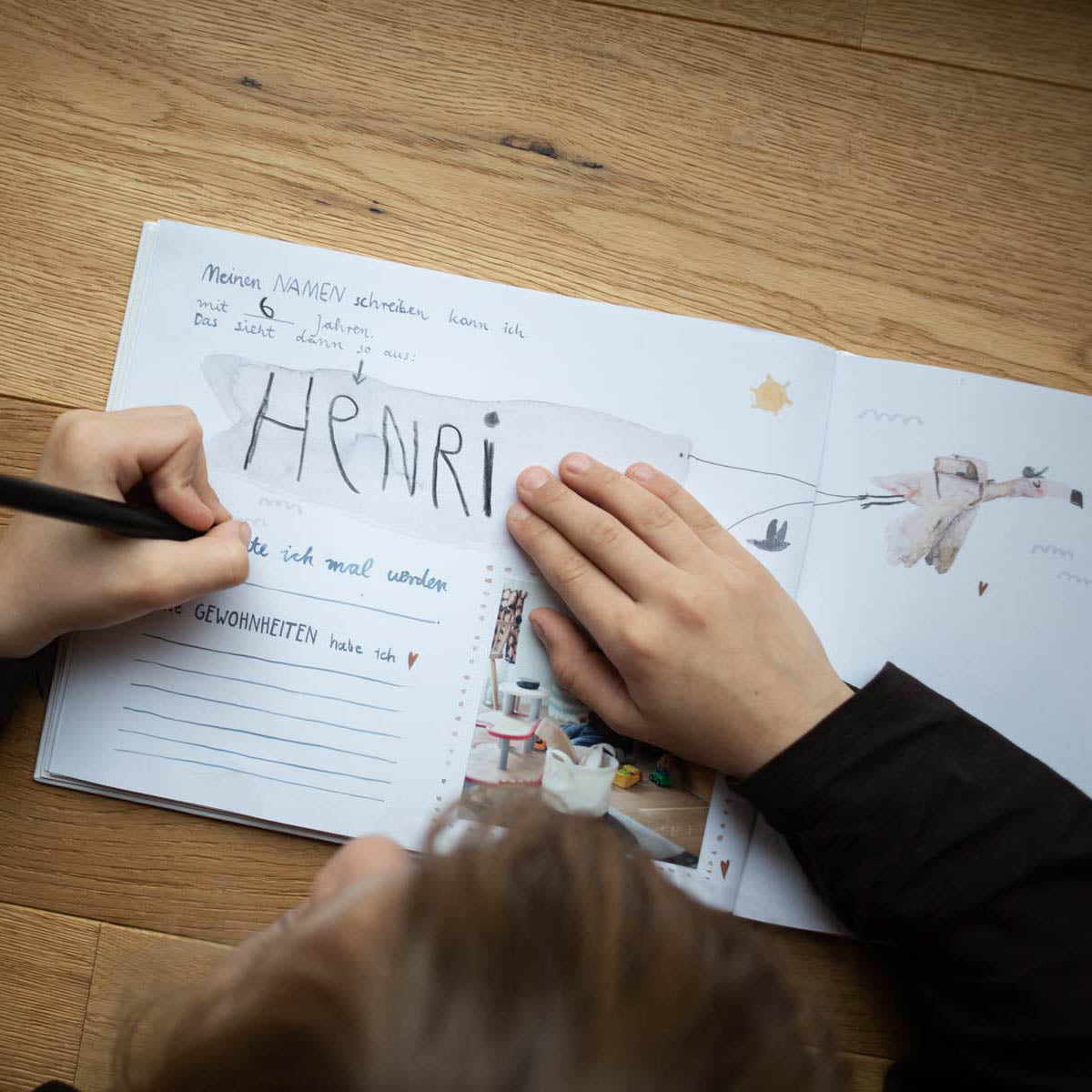 Eine komplette Kindheit, festgehalten auf 72 Seiten, mit Platz für all die vielen ersten Male, für das Bauchkribbeln des ersten Schultages, Fotos von den coolsten Abenteuerreisen und Erinnerungen an die liebsten Weggefährt:innen. Es ist ein Fotoalbum, Tagebuch und Skizzenblock in einem — Unser Erinnerungsalbum “Meine Kindheit”.