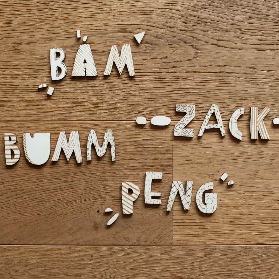 Die Holzbuchstaben sind aus 5mm starkem Pappelholz aus Europa, gelasert hier in Deutschland.