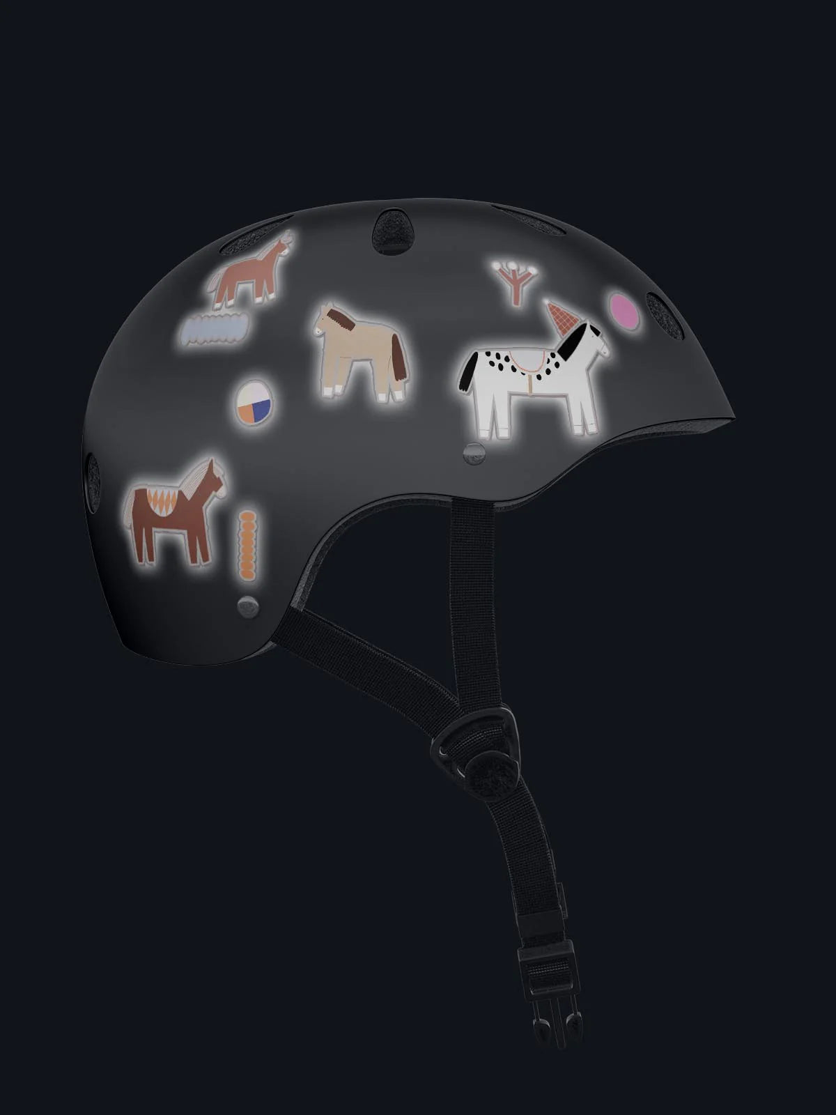 Ein Pferd ist groß, ein anderes klein, eins ist brünett und eins hell wie Kalkstein. Mit Partyhut, Sattel oder Ball, jedes ist so einzigartig wie Edelmetall. Nur eines haben sie gemein: Im Dunkeln reflektieren sie jeden Schein. Am Helm, am Fahrrad und am Roller, machen sie dein Leben ein klein wenig sichtbarer und toller! Hol dir unser einzigartiges Pferde Aufkleber Set und sorge für mehr Sichtbarkeit im Dunkeln!